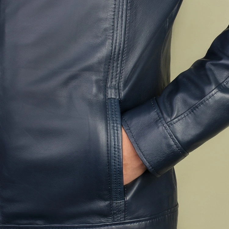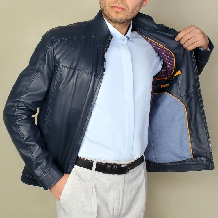 کاپشن چرمی مردانه مدل ژان سرمه ای